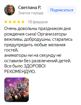 У нас можно весело провести время всей семьей и отпраздновать праздник, который отложится у ребенка в голове на всю жизнь!